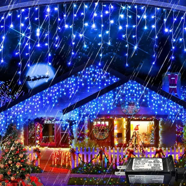 1 Pack Icicle Christmas Lights, 10M 400 LED 8 Modes and Timer With 60 Drops, Icicle Christmas Lights with Timer, Waterproof Connectable Outdoor String Lights for Holiday, Wedding, Christmas