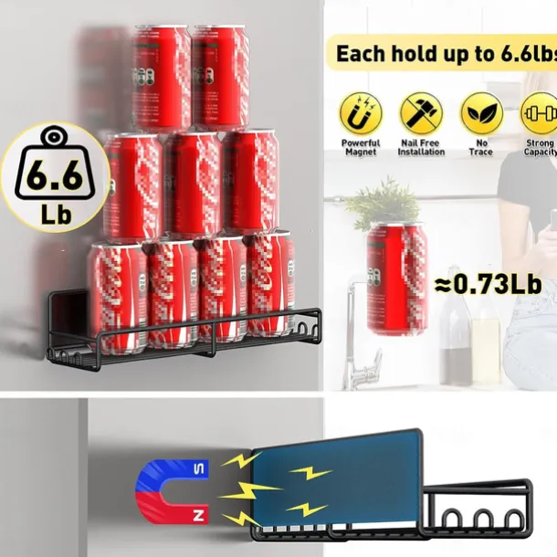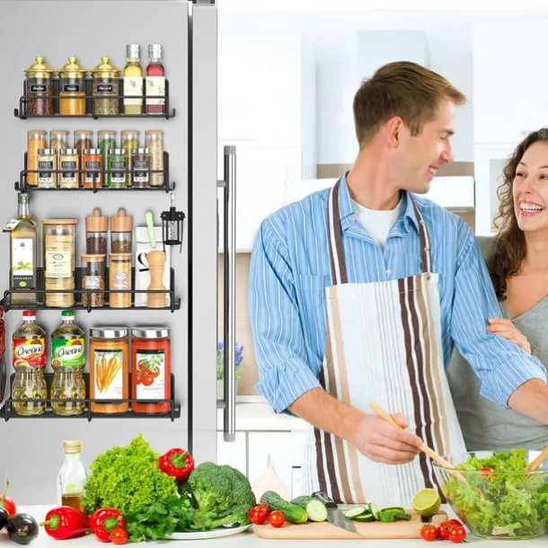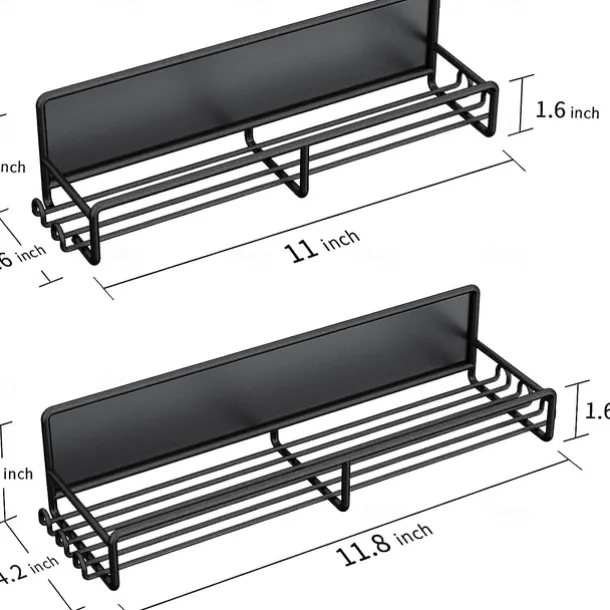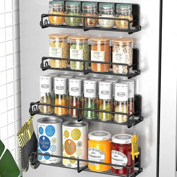 1 Pack Magnetic Spice Rack Organizer, Magnetic Spice Rack for Refrigerator, Magnetic Shelf for Holding Spices, Jars, Bottle, Metal&Black