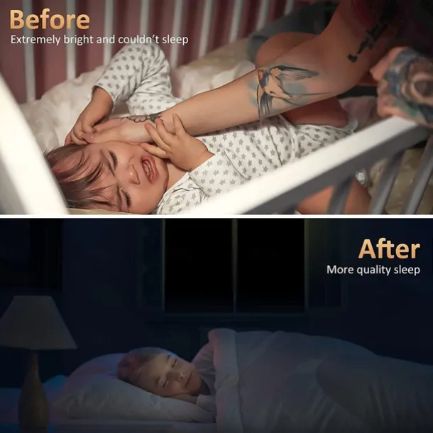 – Block 100% of Sunlight and UV Rays for a Comfortable Sleeping Environment: Our premium fabric with a special silver coating behind provides complete blackout, reducing heat and creating a real dark and comfortable sleeping environment at any time.