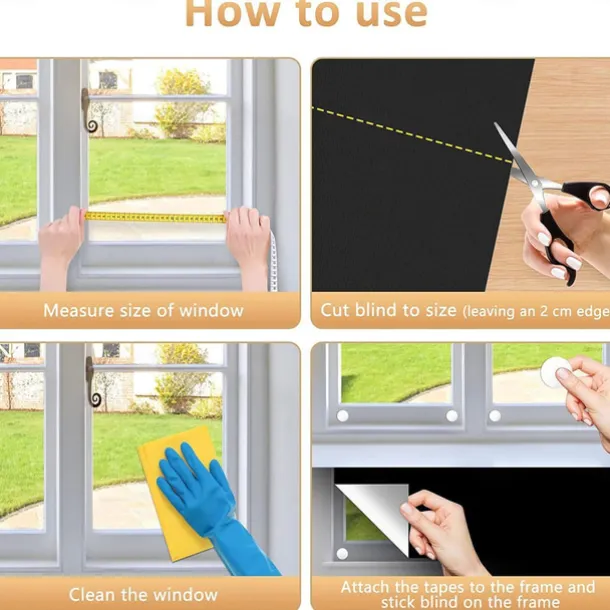– Customizable Shape for Any Window: Our temporary blackout window shades can be easily cut to any shape or size needed for camper, doors, patio glass, skylight, small and large windows. Install with double-sided patches on each side to ensure maximum blackout, and cut the door blackout cover oversized to minimize light entering.