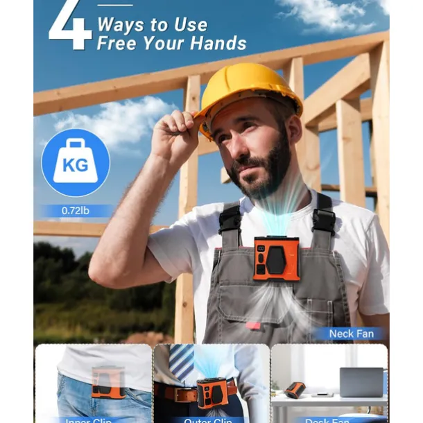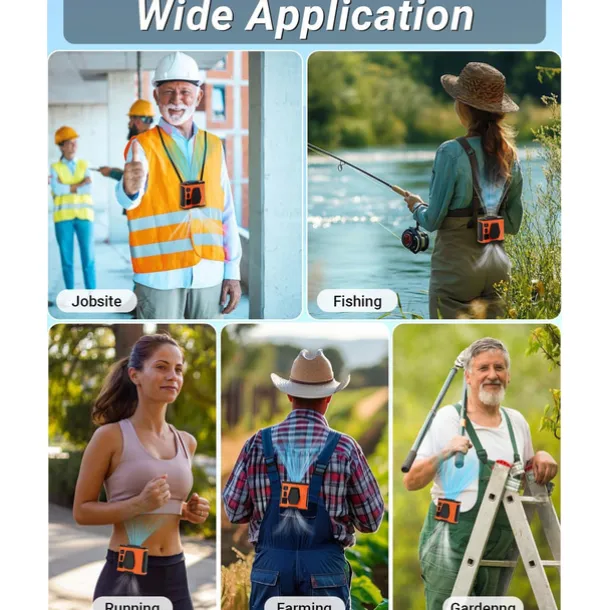 100 Speeds Portable Waist Fan Rechargeable Personal Body Fan, 10000mAh 40H Cooling 20000RPM Flashlight for Outdoor Jobsite Camping Travel Power Bank