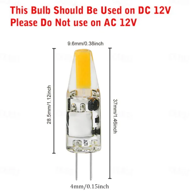 Quantity: 10pcs, LED Beads Quantity: 1, Light Color: Warm White, White, Type: LED Bi-pin Lights, Wattage (W): 3, Voltage (V): 12, Initial Lumens (lm): 300, Color Temperature (k): 3000 6500, Primary Application: Home / Office, Children’s Room, Kitchen, Living Room / Dining Room, Bulb Shape: T, LED Type: COB, Bulb Base: G4, Net Weight (kg): 0.02,