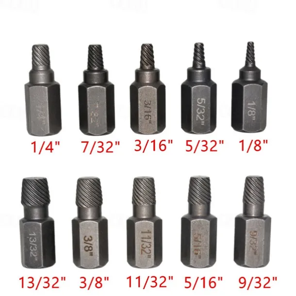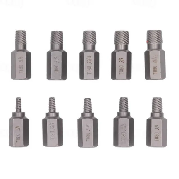 10PCS Screw Extractors Hex Head Multi Spline Broken Screws Bolts Removal Tool Left Spiral DIY Tool Set
