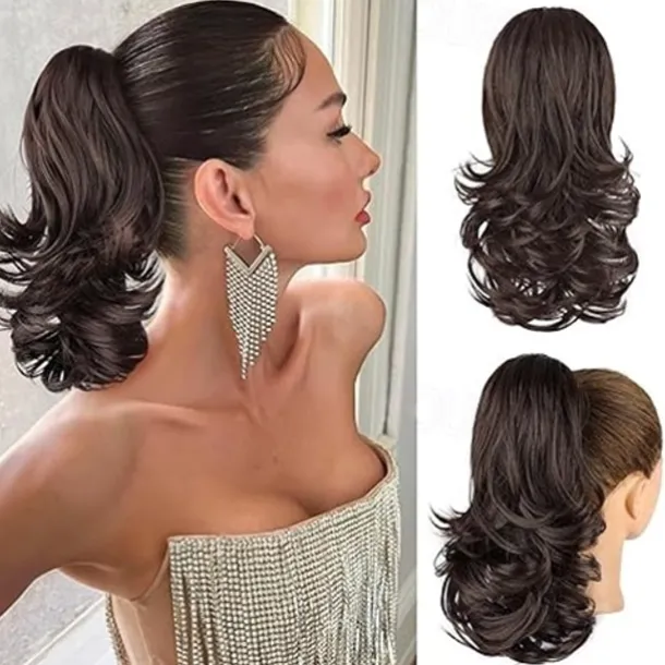 12 Inch Pony Tails Hair Extensions, Short Thick Ponytail Extension Clip in Claw Pony Tails Hair Extensions for Women Natural Curly Fake Ponytail Hair Piece for Daily Use