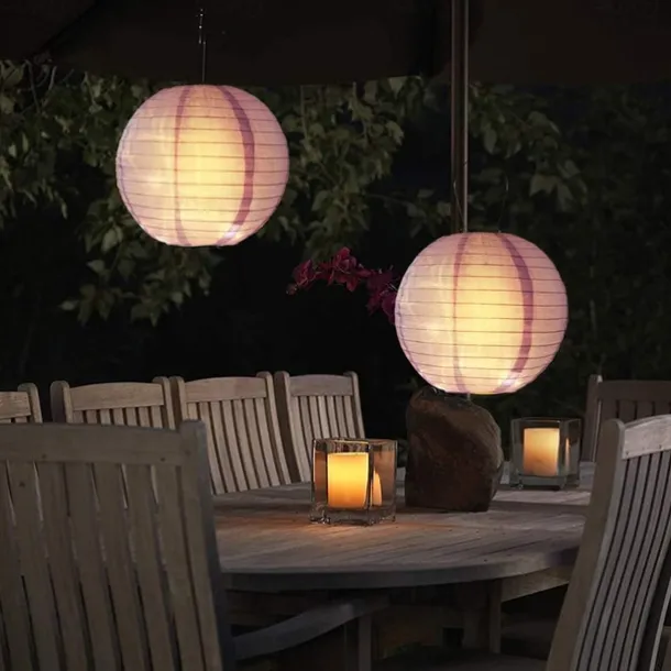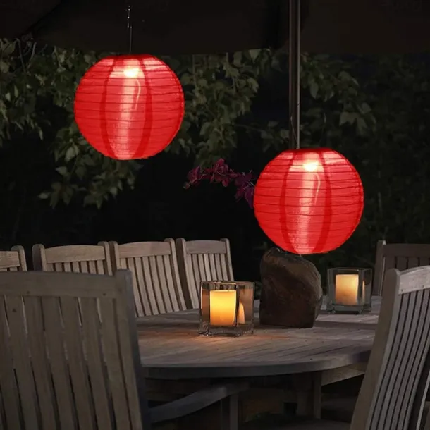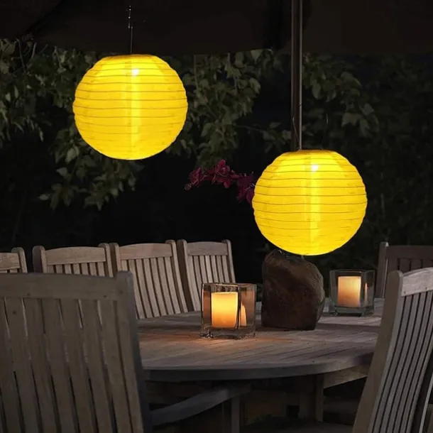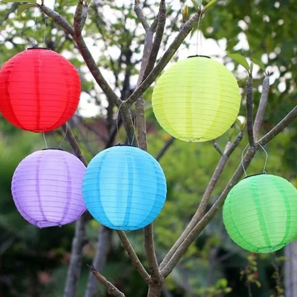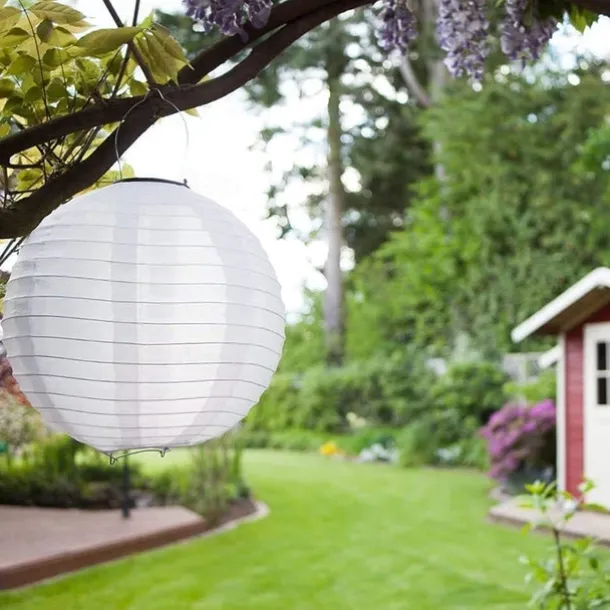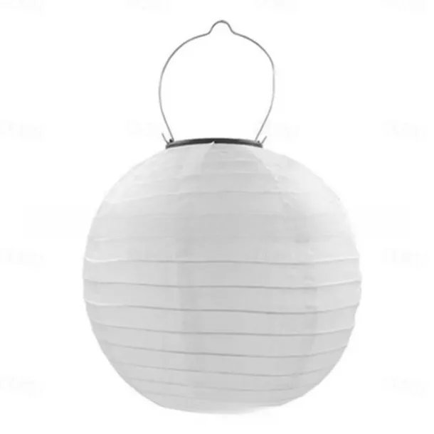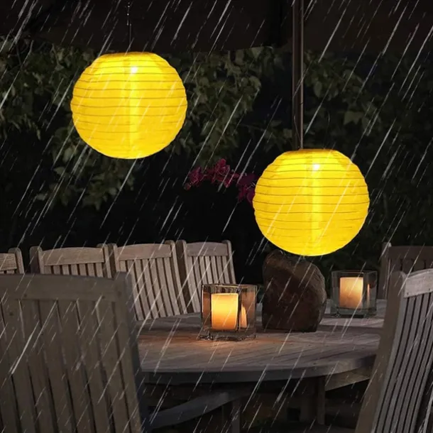 12″ Solar Powered Lanterns Waterproof Outdoor Nylon Cloth Paper Lantern Lamps Garden Hanging Paper Lanterns