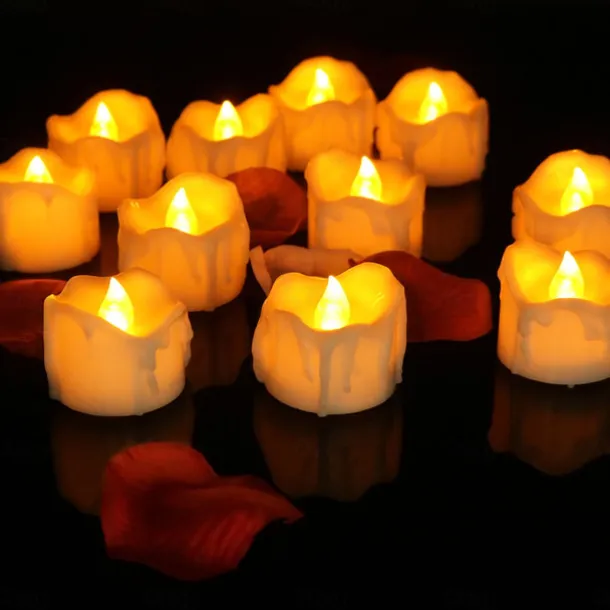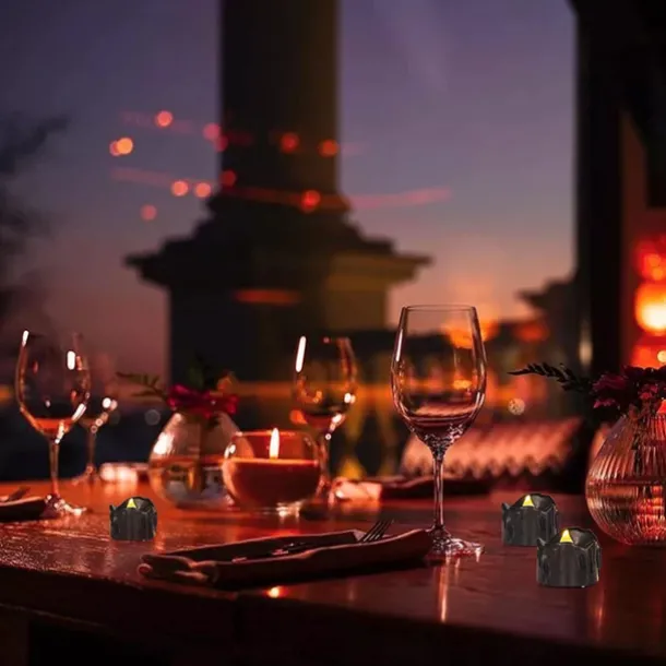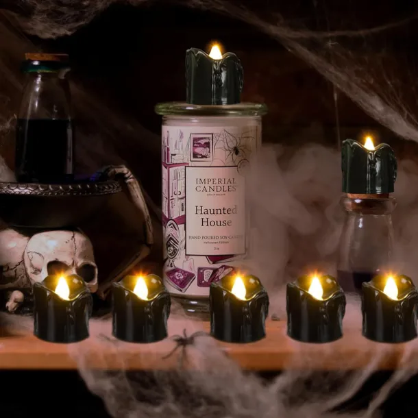 12pcs Black LED Tea Lights Halloween Night Lights Candle Lights Outdoor Indoor Garden Halloween Decor Halloween Electric Candles Battery Powered Halloween Lanterns Holiday Party Decorations