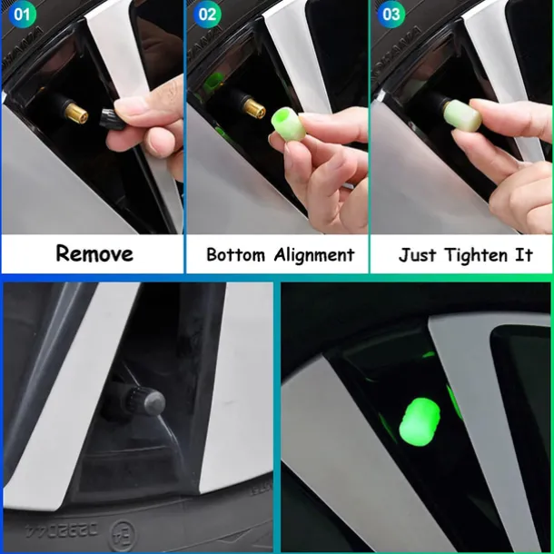 16 PCS Fluorescent Tire Valve Stem Caps, Car Wheel Air Valve Covers Luminous Car Exterior Accessories Cool Noctilucous for Car, Bicycle, Motorcycle, SUV, Truck and Bike