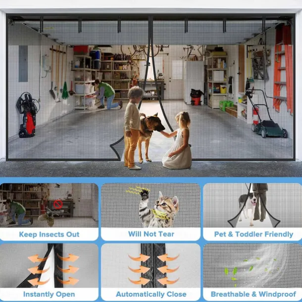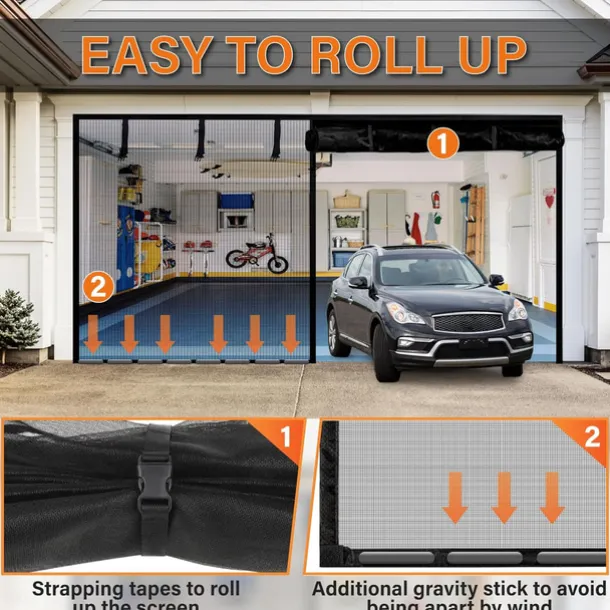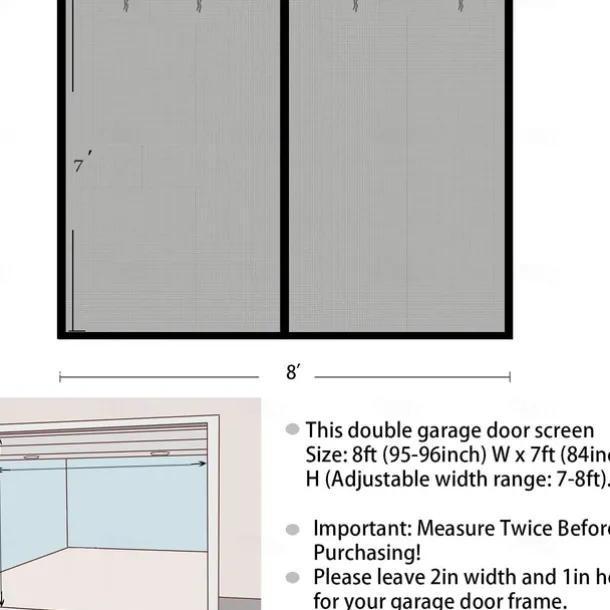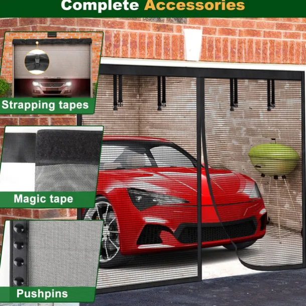 16x7FT/8x7FT Garage Screen Door Magnetic Garage Door Screen Magnetic Closure Fiberglass Garage Screen Doors for 2 Car Garage Pull Down for Patio, Porch, Window to Keep Bugs Out