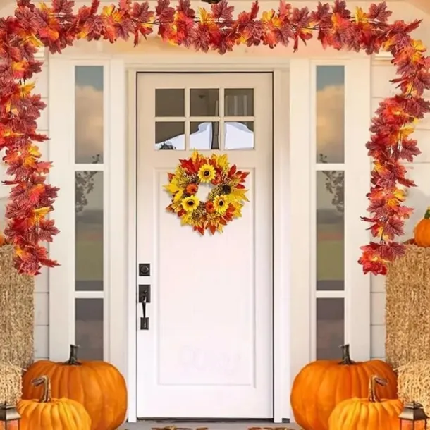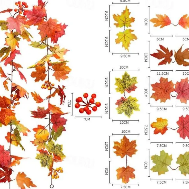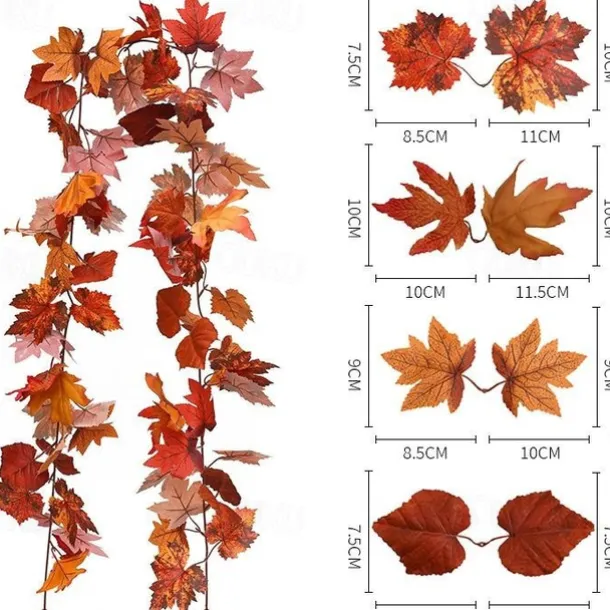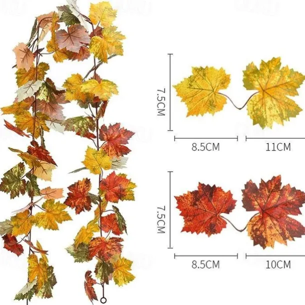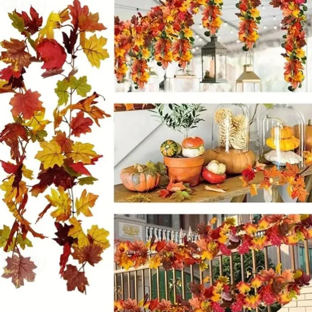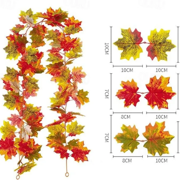 170CM Artificial Maple Vine, Fall Maple Leaf Garland, Outdoor Garden DIY Decoration, Wedding Festival Party Decoration, Autumn Thanksgiving Halloween Room Decor