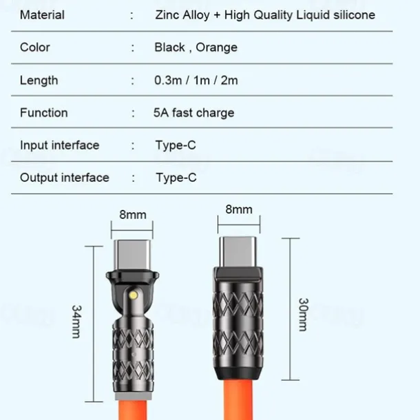180 Degree Rotating Data Cable 100W Super Fast Charge for Apple Android Huawei Thick Passenger Charging Cable