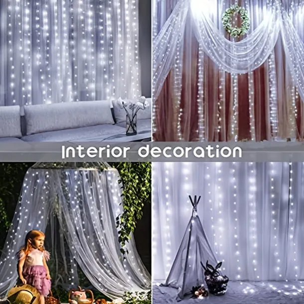 1pc Curtain Lights 300 LED Curtain Fairy Lights with Remote 8 Modes 9.8 9.8 Ft Curtain String Lights Waterproof USB Plug In Copper Wire Lights For Bedroom Window Chrismas Wedding Party