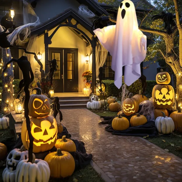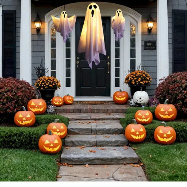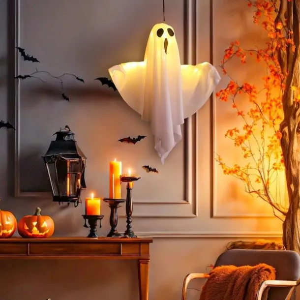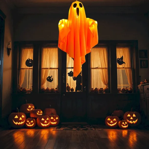 1pc Halloween Decorations Lighted Ghost Hanging Light Porch, Adjustable Arms for Glass Window, Indoor & Outdoor Tree Decor – Festive Atmosphere Decorative Light with 3 Lighting Modes (White & Orange)