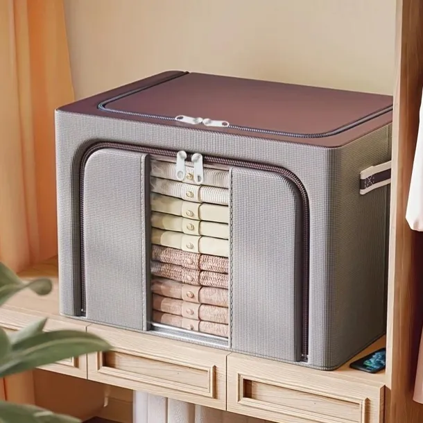 1pc Large Capacity Clothes Storage Box, Dustproof Clothing Quilt Organizer, Foldable Container For Dorm, Home