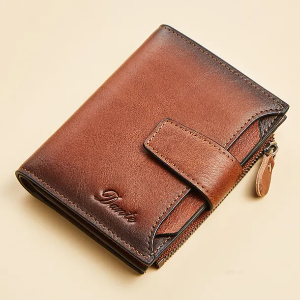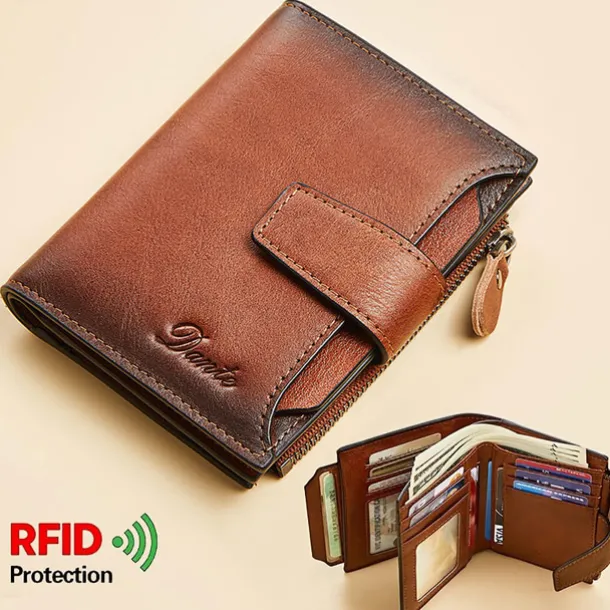 1pc Men’s Genuine Leather Wallet Vintage Short Multi Function ID Card Holder RFID Blocking Zipper Coin Pocket Billfold Give Gifts To Men On Valentine’s Day