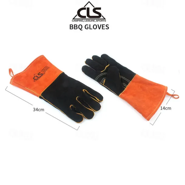 1pc Outdoor BBQ Camping Fire Leather Gloves, Heat-Resistant Protective Gloves, Ideal for Grilling, Cooking, and Outdoor Activities, Durable and Comfortable for Safe Handling of Hot Items