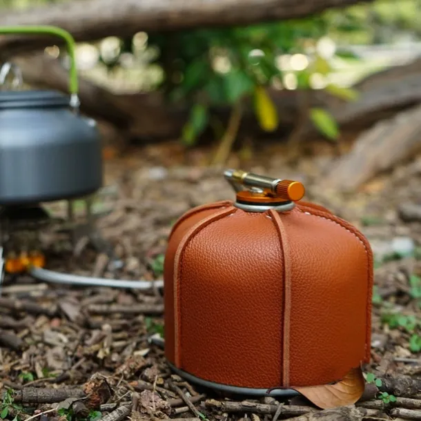 1pc Outdoor Camping Flat Gas Cylinder Leather Cover, Durable Protective Case, Weather-Resistant, Stylish and Practical, Safeguards Gas Cylinder from Scratches and Damage, Ideal for Outdoor Camping and Picnics