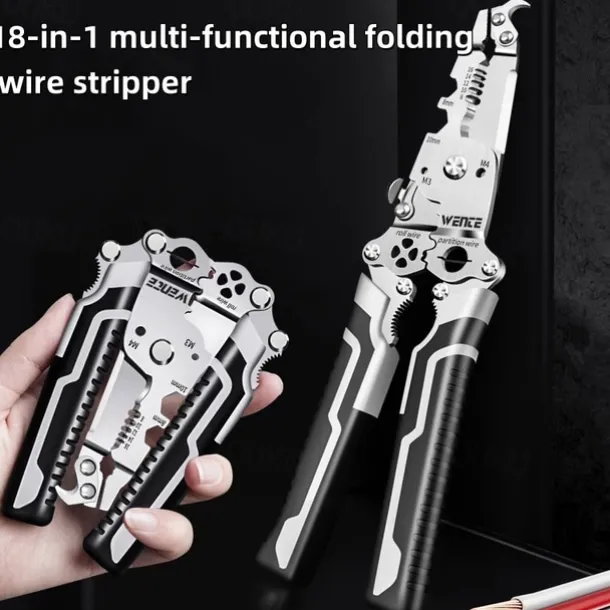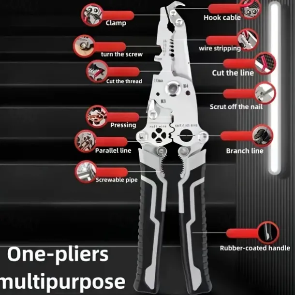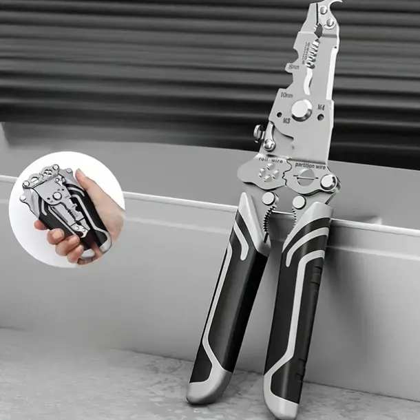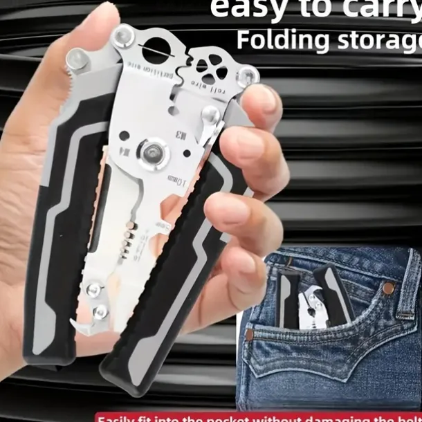 1pc ProMaster Multifunctional Wire Stripper Cutter Foldable Metal Tool with Hook Knife Screwdriver Wrench Quick Wire Stripping and Cutting Electrician Hand Tool