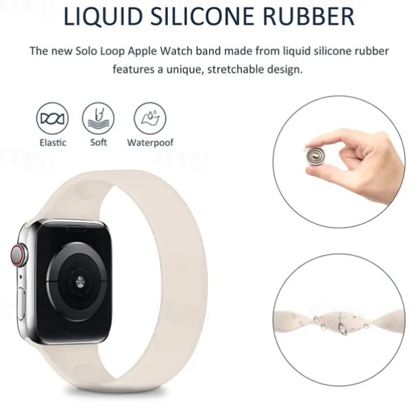 1pc Sport Elastic Silicone Solo Loop Strap for Apple Watch 38mm 40mm 41mm 42mm 44mm 45mm, Replacement Wristband for iWatch Series 7 6 5 4 3 2 1 SE for Men and Women