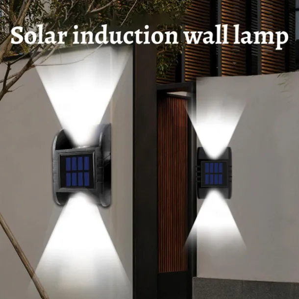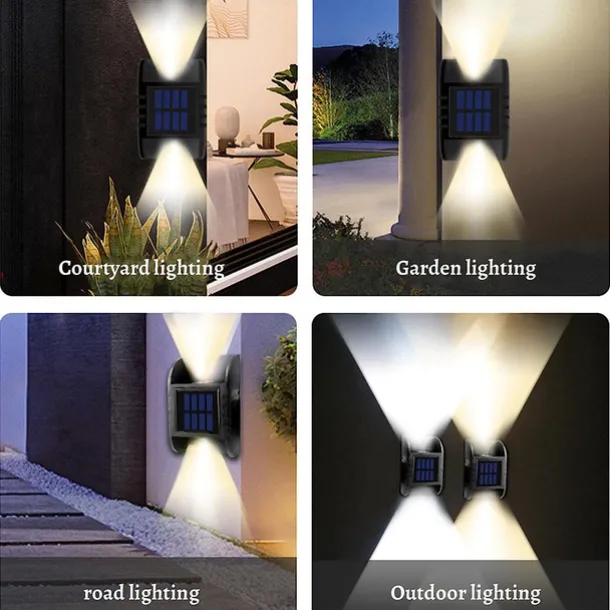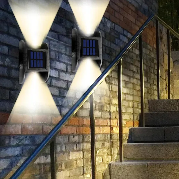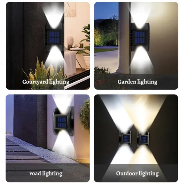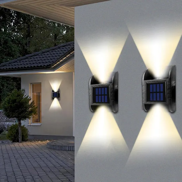 2 Pack 2LED Solar Wall Light UP and Down Illuminate Outdoor Sunlight Lamp IP65 Waterproof Modern Decor for Home Garden Porch, Black