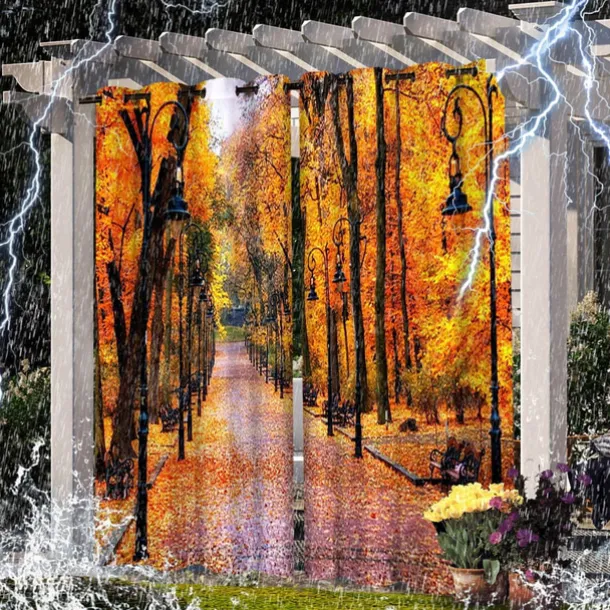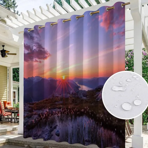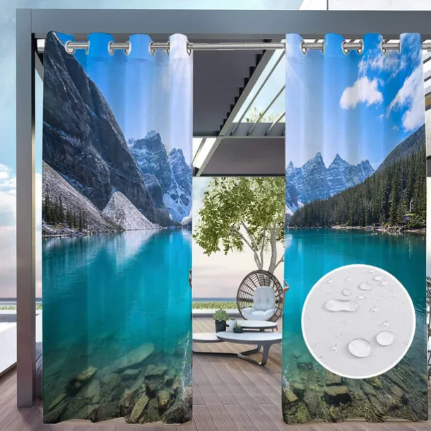 2 Panels Outdoor Curtain Privacy Waterproof, Sliding Patio Curtain Drapes, Pergola Curtains Grommet 3D Landscape For Gazebo, Balcony, Porch, Party, Hotel