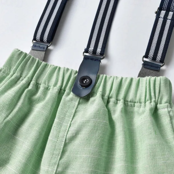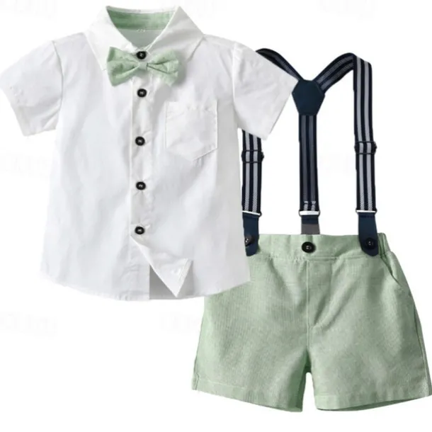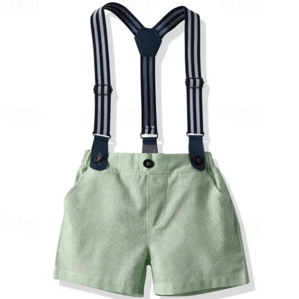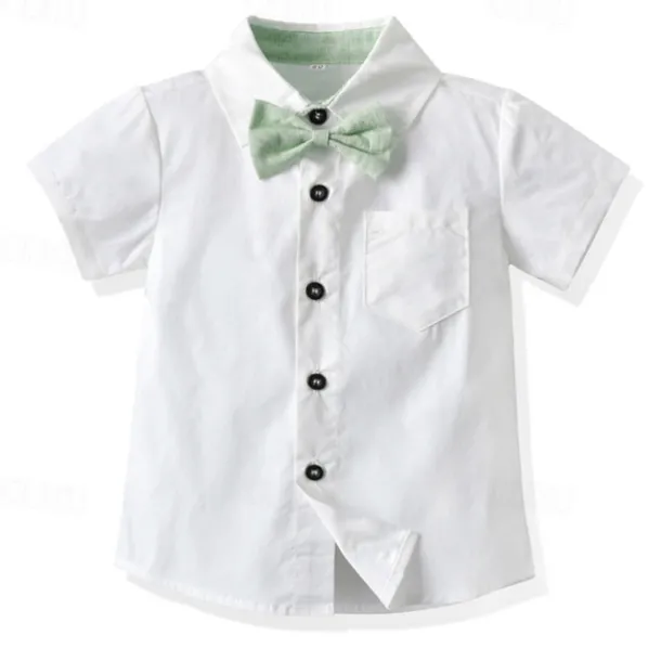 2 Pieces Ring Bearer Suit Boys Kids Shirt & Shorts Clothing Set Outdoor Street Fashion Cool Casual Solid Color Bow Pink Green Cotton