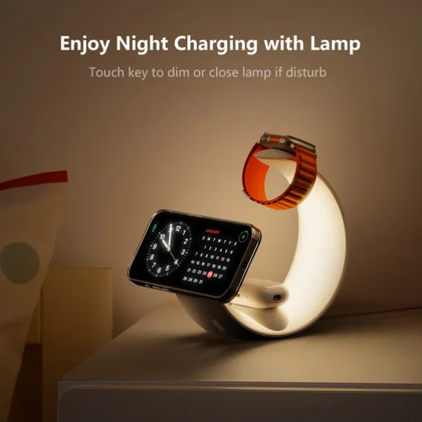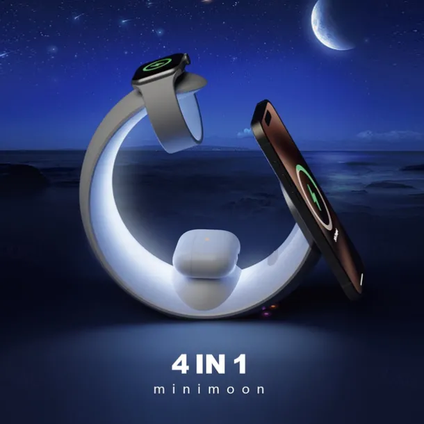 2024 Hottest Multi-function 4 In 1 Night Light Wireless Charger For iPhone Airpods iWatch Moon Shape Magnetic Wireless Charger