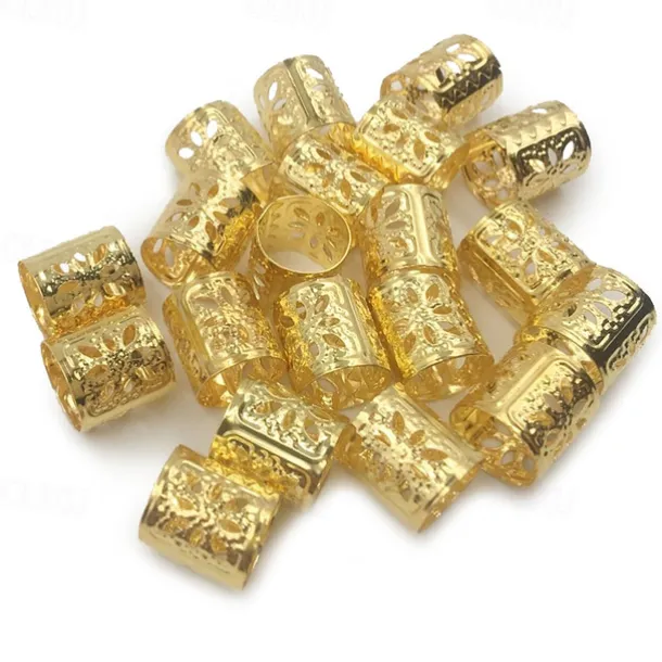 20Pcs Dreadlock Beads Adjustable Hair Braid Cuff Clip 8Mm Hole Golden Silver Mixed Color Hair Jewelry Hair Jewels for Braids