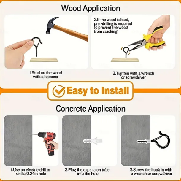 20pcs Q-Hanger Screw Hooks with Safety Buckles – Fashion Metal Outdoor Lights Hanging Kits for Christmas Fairy & String Lights – Easy Release, 2.2 Inch Length