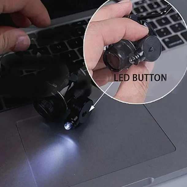 20X LED Magnifier Glasses Double Eye Jewelery Watch Repair Tools Lamp Loupes Eyewear Magnifying Glass Light