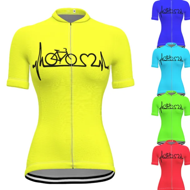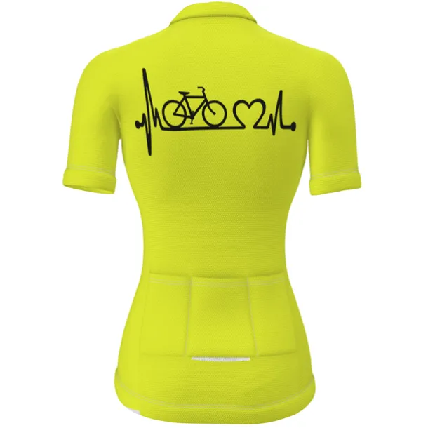 21Grams Racing Cycle Heartbeat Women’s Cycling Jersey Summer Spandex Polyester Yellow Bike Tee Tshirt Jersey Top Mountain Bike MTB Road Bike Cycling Breathable Back Pocket Sports Clothing