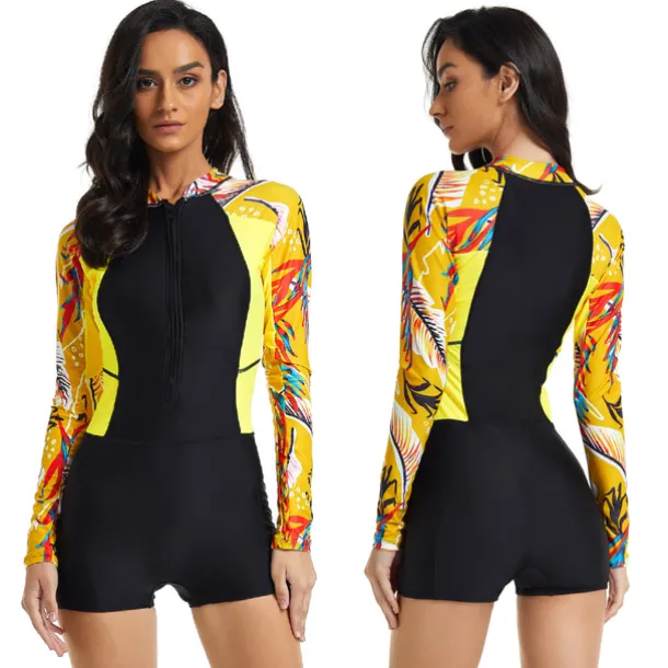 21Grams Women’s Rash guard Swimsuit UV Sun Protection UPF50+ Lightweight Long Sleeve Bodysuit Bathing Suit Front Zip Boyleg Swimming Surfing Beach Water Sports Summer Spring Autumn / Fall