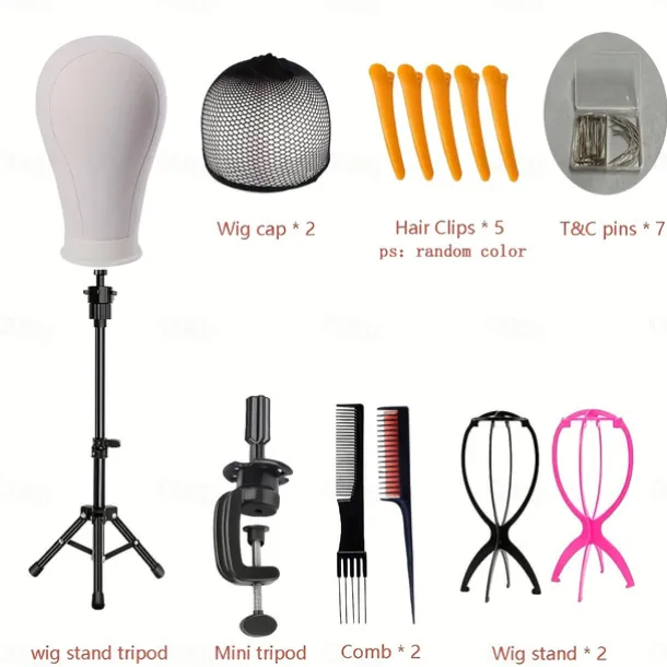 22 Inch Wig Head/ Stand Tripod with Head CanvasMannequin Head for WigsManikin Head Block SetMaking Display with Wig caps70 T &C Pins Set2 Combs2 Wig StandMni Tripod5 Hair Clips
