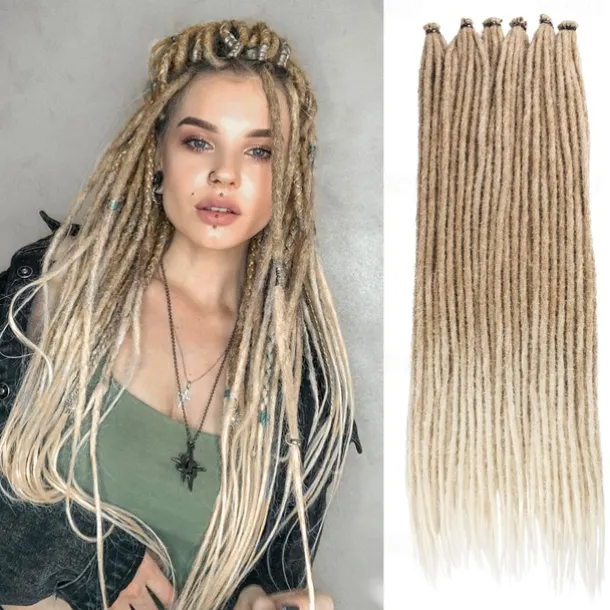 24 Inch Synthetic Dreadlock Extensions 20 Strands Hippie Single Ended Dreads Ombre Blonde 0.6 cm Width Loc Extensions Reggae Style Crochet Hair for Women