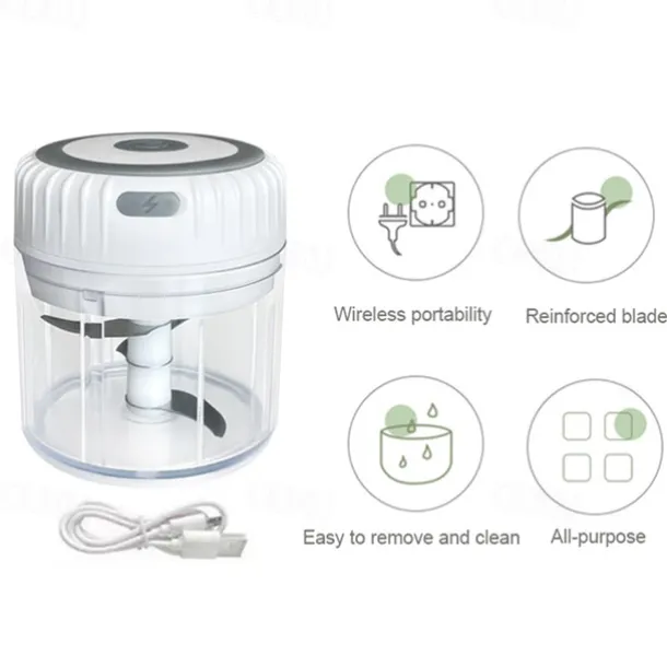 250mL Mini Electric Garlic Chopper Ginger Masher Machine Chili Vegetable Crusher Kitchen Tool Sturdy Durable USB Charging