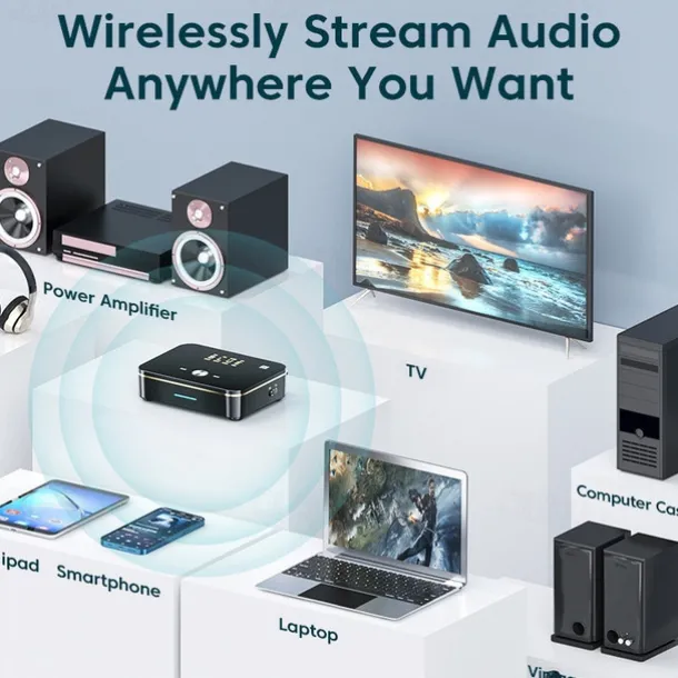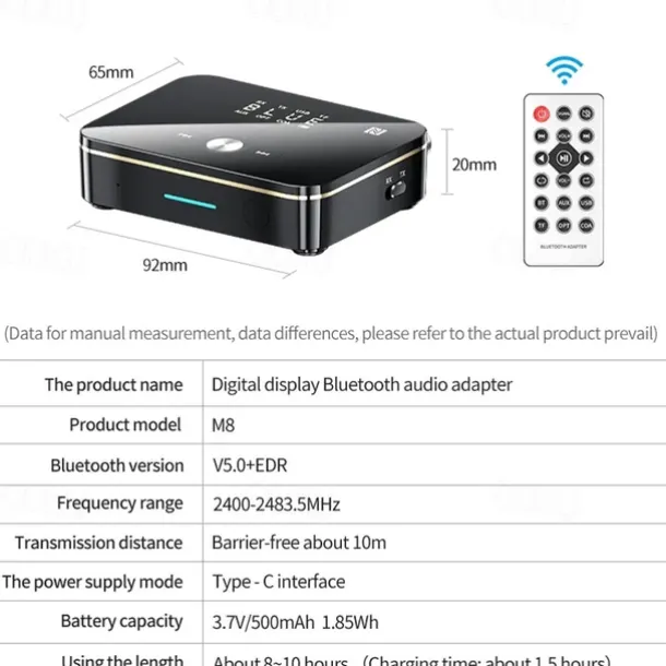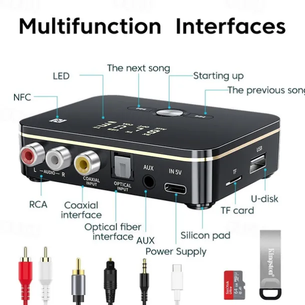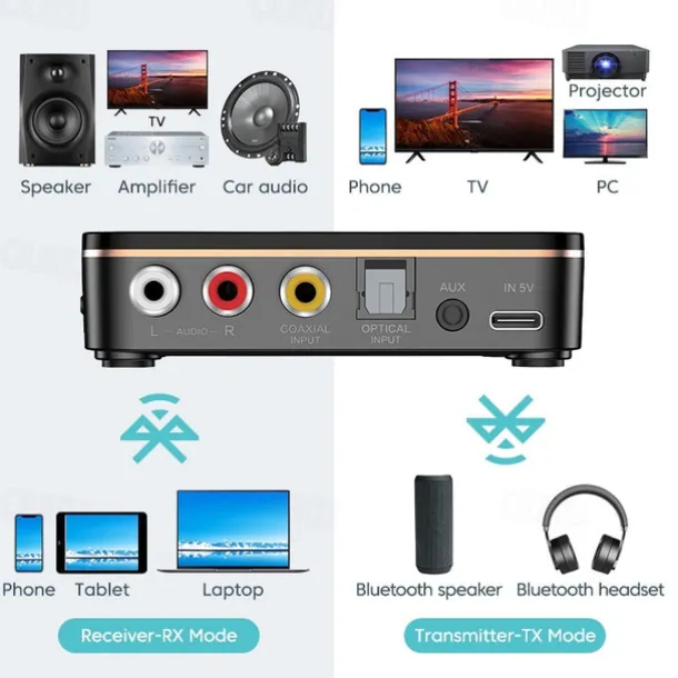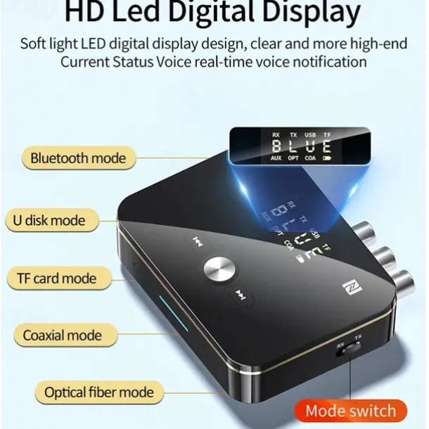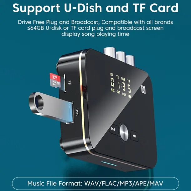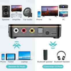 2in1 Bluetooth 5.0 Receiver Transmitter FM Stereo AUX 3.5mm Jack RCA Optical Handsfree Call NFC Wireless Bluetooth Audio Adapter TV
