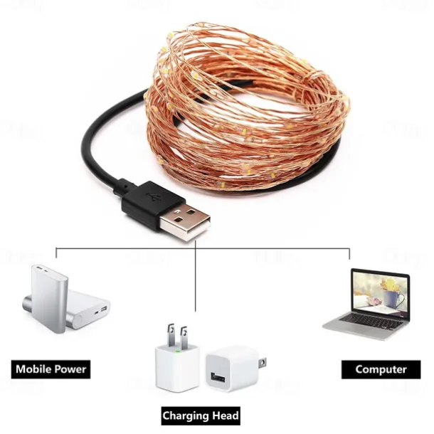 2M 20LED USB Powered Gypsophila String Lights, Warm White/Red Cuttable Design, Outdoor Garden String Lights Christmas Courtyard Decoration