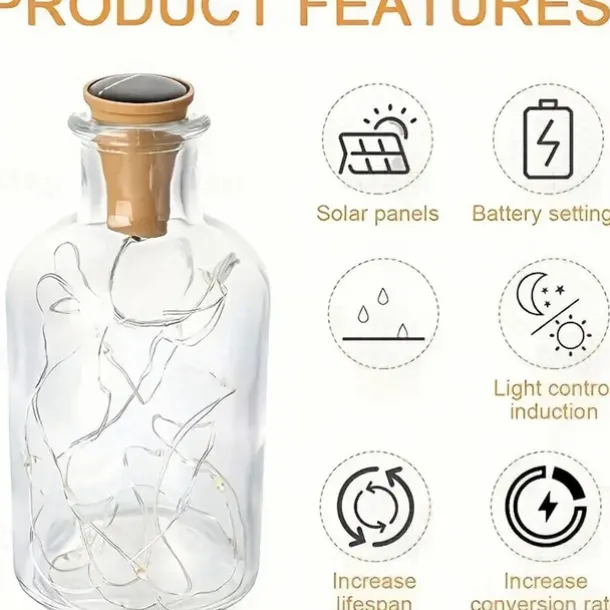 LED Beads Quantity: 20, Light Color: Warm White, RGB, Blue, White, Power Supply: Solar Energy, Type: String Lights, Style: Bottle Lights, Features: Waterproof, Christmas Wedding Decoration, Quantity: 5pcs, Voltage (V): Solar Powered, Initial Lumens (lm): 3000, Length: 2m, Mode: 1(On / OFF), Shape: Geometric, Occasion: Wedding, Party / Banquet, Outdoor,