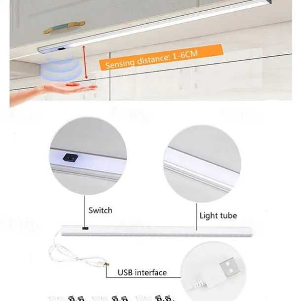 2Pack Cabinet Lights USB Powered Smart LED Kitchen Light Hand Sweep Sensor Light High Brightness Backlight for Cabinet Wardrobe Drawer Sensor Light 30/40cm