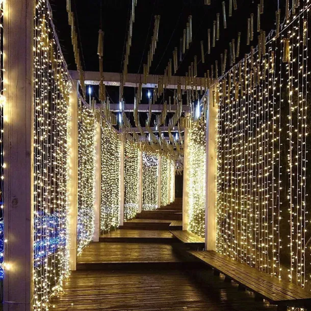 2pcs 3*3 m 300 LEDs 31V low Voltage Curtain String Lights Warm White White 8-Mode New Design Wedding Christmas Wedding Decoration No Electric Shock Safer Garden Courtyard Decoration Lamp