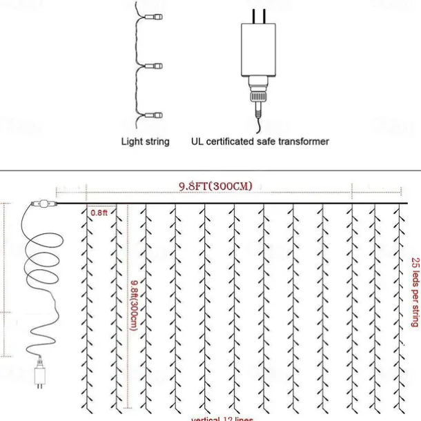 LED Beads Quantity: 300, Light Color: Warm White, White, Type: String Lights, Style: Window / Curtain / Icicle Lights, Features: Patio, Curtain String Lights, Christmas Wedding Decoration, Wedding, Quantity: 2pcs, Wattage (W): 15, Voltage (V): 31, Initial Lumens (lm): 3000, Length: 3*3 m, Mode: 8 Modes: (1.Combination 2.Wave 3.Sequential 4.Glow 5.Flash 6.Slow Fade 7.Twinkle 8.Continuous), Batteries Included: No, IP Rating: IP44, Control Mode: Button, Suitable Rooms: Bedroom, Shape: Square, Occasion: Window / Curtain / Wall,