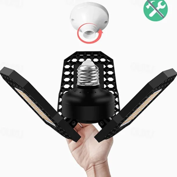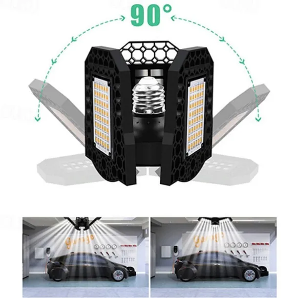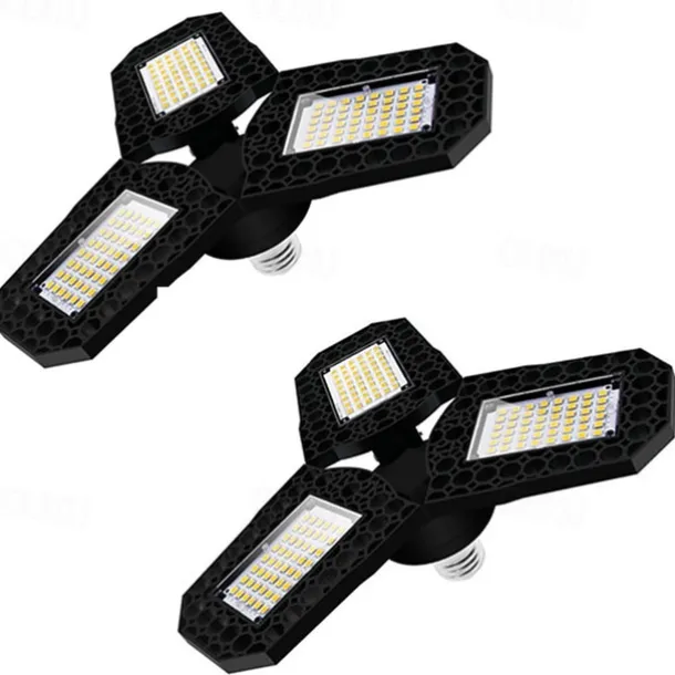 2pcs 80w LED Garage Ceiling Light Deformable 3 Adjustable Panels E26 E27 for Home Warehouse Workshop Lamp Warm White AC85-265V