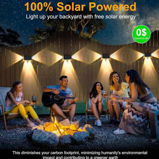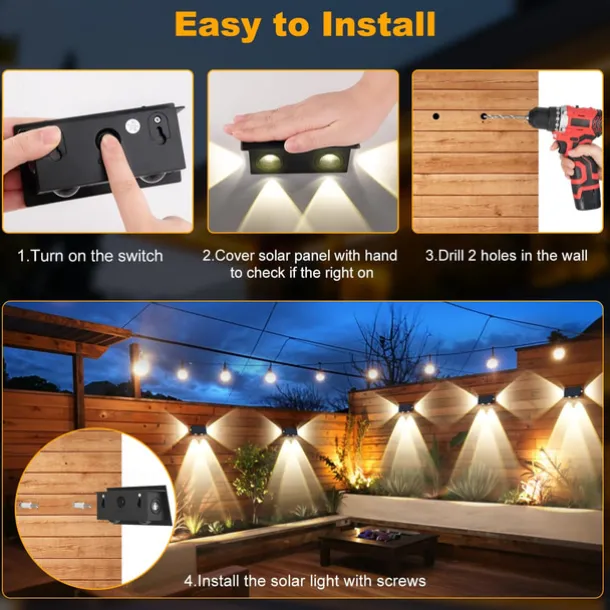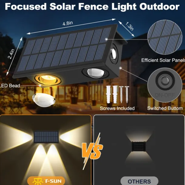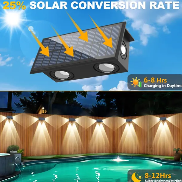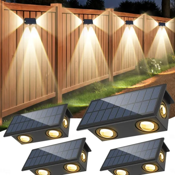 2pcs Outdoor Solar Waterproof Wall Lamp – 4 LED Beams for Courtyard, Balcony, Fence, Steps, Eaves and Porch Lighting