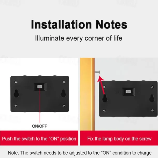 – Easy to Install: To charge, push the switch to the “ON” condition. The solar wall lamp can be easily installed by using screws to hang it or using the included glues to stick it.