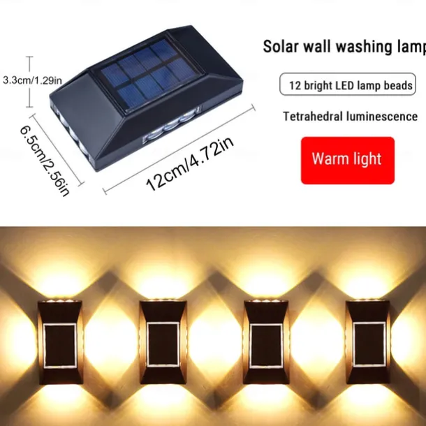 2pcs Solar LED Wall Light – Four Sides Lighting, IP65 Waterproof Wall Deck Lighting for Terrace, Porch, House Decoration