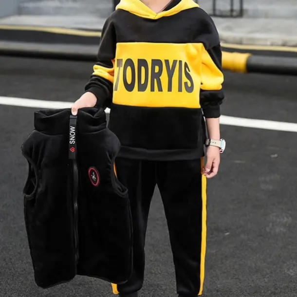 3 Pieces Kids Boys Hoodie & Pants Clothing Set Outfit Letter Long Sleeve Zipper Set Outdoor Cool Daily Winter Fall 7-13 Years Purple Yellow Red