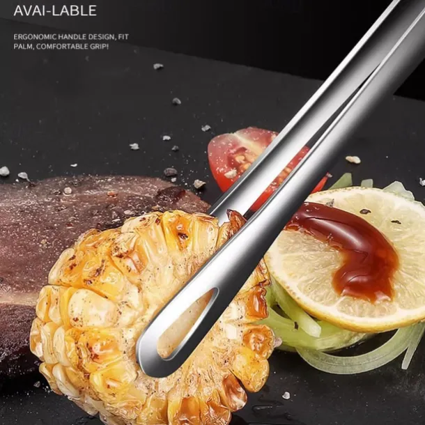 304 Stainless Steel Yakitori Grill Tongs – Japanese BBQ Rotating Lock Clip for Charcoal, Campfire & Teppanyaki | Non-Slip Teeth + Heat-Resistant Silicone Grip