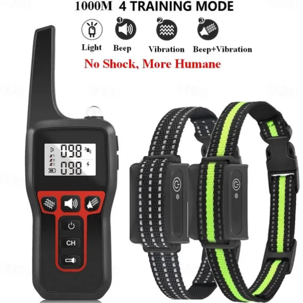 3300FT No Shock Pet Dog Training Collar Beep Vibrating Pet Trainer IPX7 Waterproof Rechargeable Pet Training Collar No Prongs Sound and Vibration Collar