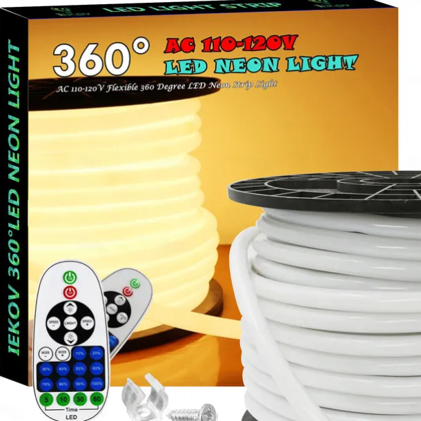 360 Neon Light LED Strip AC110 16-100 ft Flexible/Waterproof/ Dimmable Timing Warm White LED Rope Lightremote Control Suitable for Home/Garden/Building Decoration DIY Decor US Plug