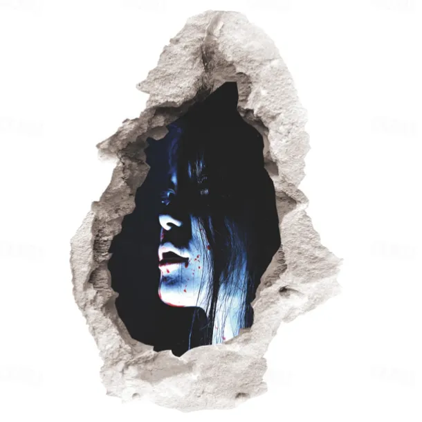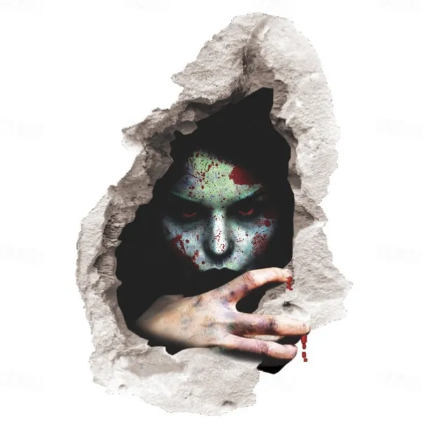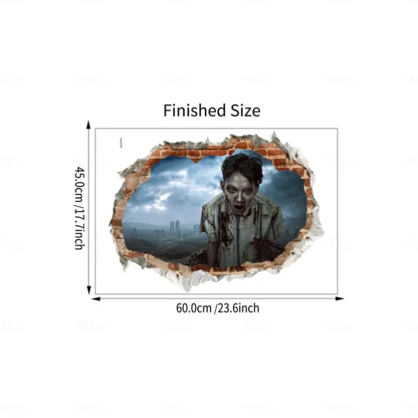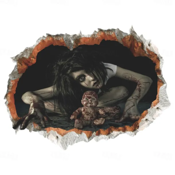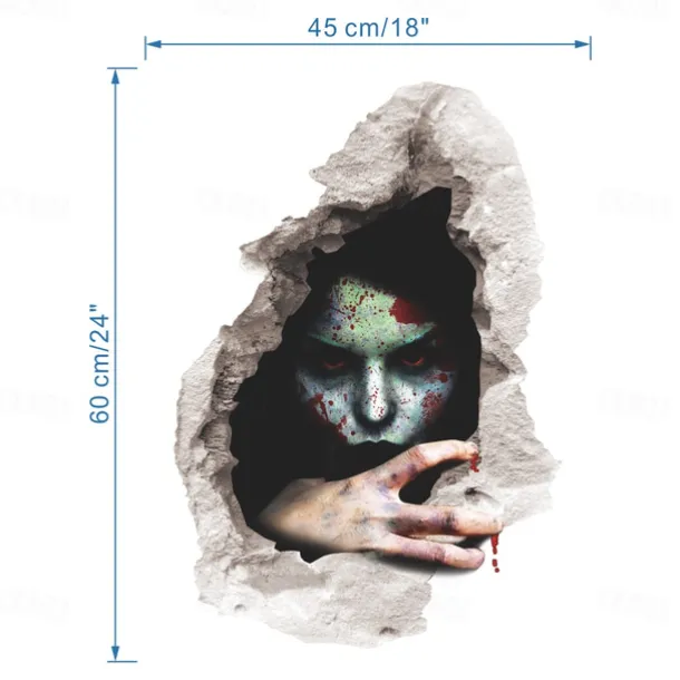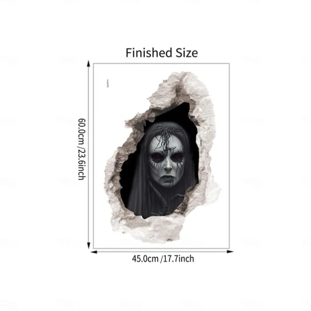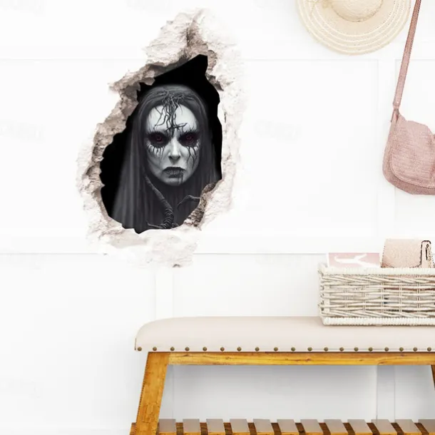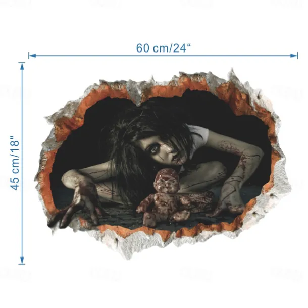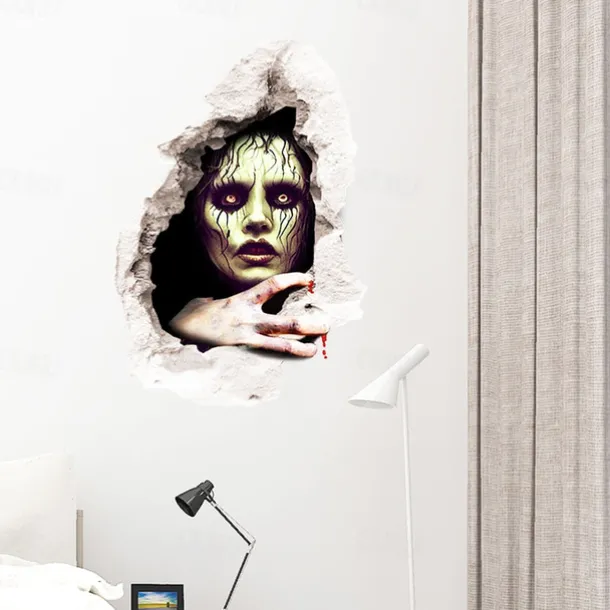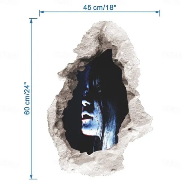 3D Halloween Terror Lifelike Broken Wall Female ghost and male ghost Wall Stickers Removable Home Decoration Living Room Entrance Sofa Background Bedroom Study Mall Specific Scene Wall Stickers