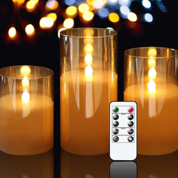 3pcs Flameless Candles Lights with Timer Battery Operated Flickering Candles Imitation Glass Candles with Remote for Romantic Ambiance and Home Decoration Durable Acrylic Shell